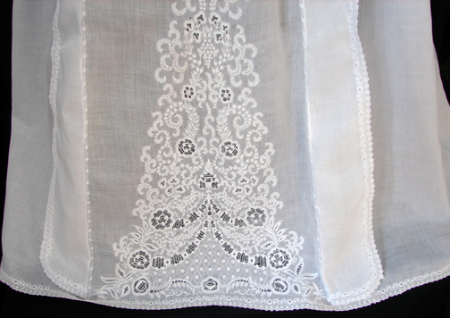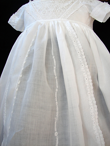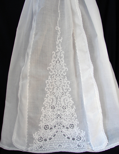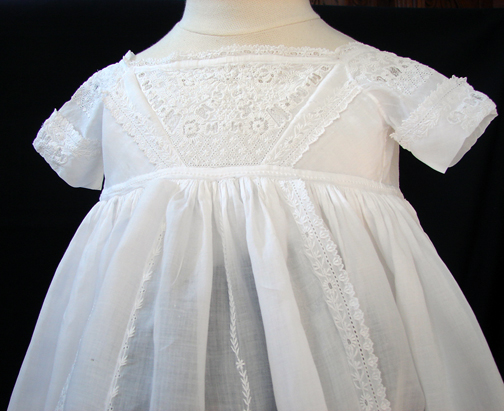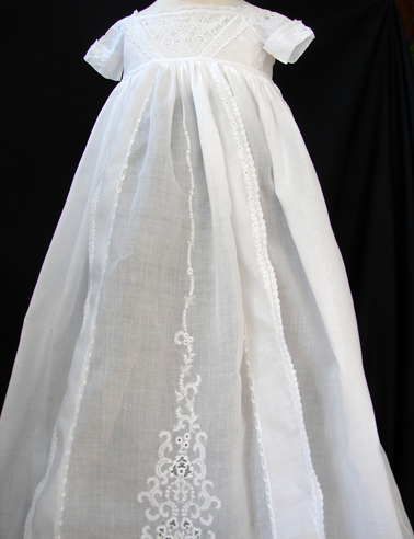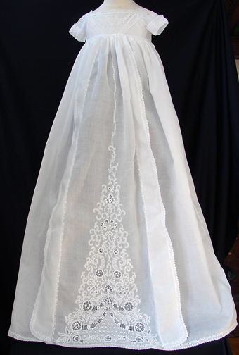 Measuring apprx. 44" long, 9 1/4" across chestline, 3 3/4" across armhole. In overall mainly good condition, there is a small wear area on bodice and a few tiny repairs done in their time. Overall quite minor, as the gown is in mainly strong good condition.