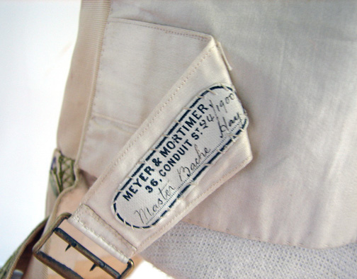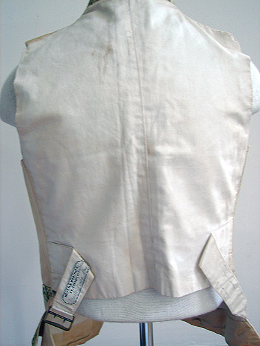 Measuring apprx. 17", 12 1/2" across chestline, and 6 1/2" across armhole. In mainly overall good condition, some wear on silk on inner neckline, and a few stains on inner lining.