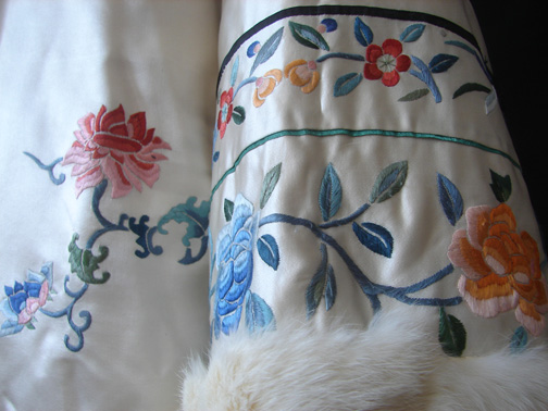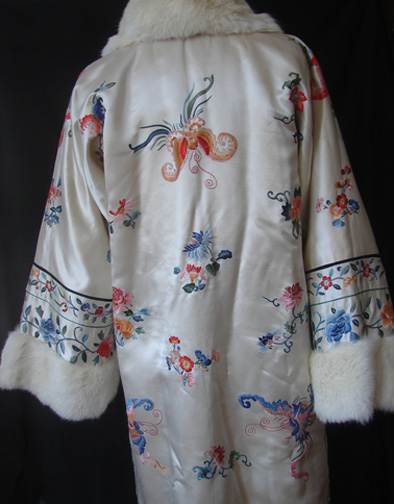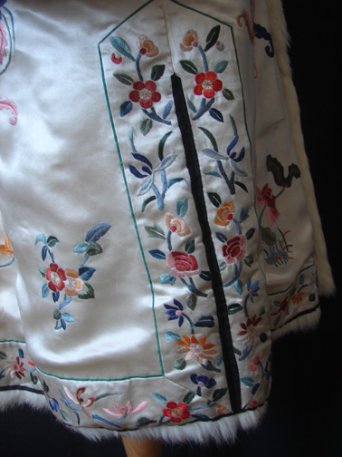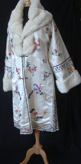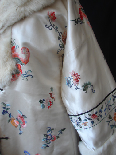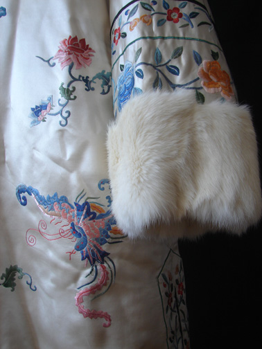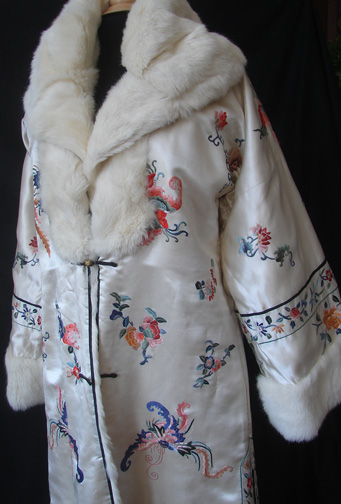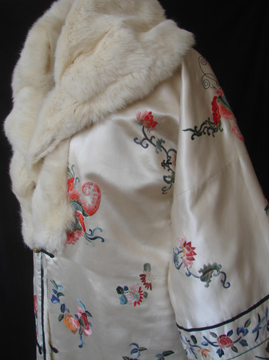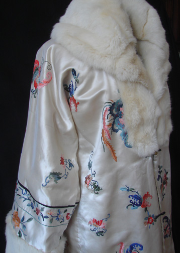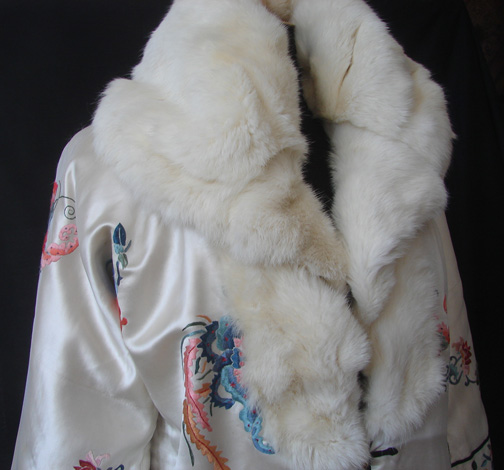 Measuring apprx. 41-42". I am not sure of the fur, but it is extremely soft and luxurious to the touch. Cleaned and in good condition, a few tiny spots that are absolutely minor.