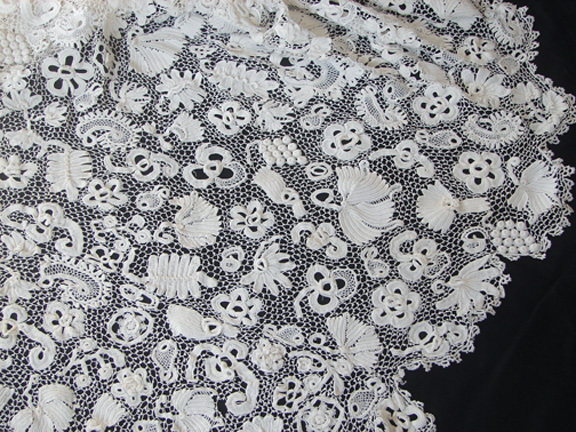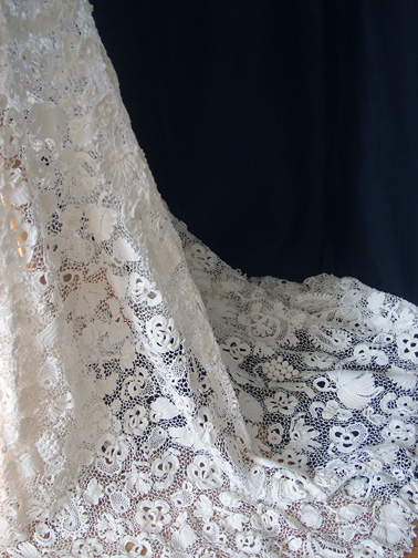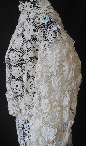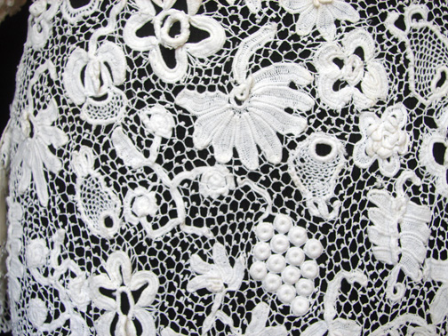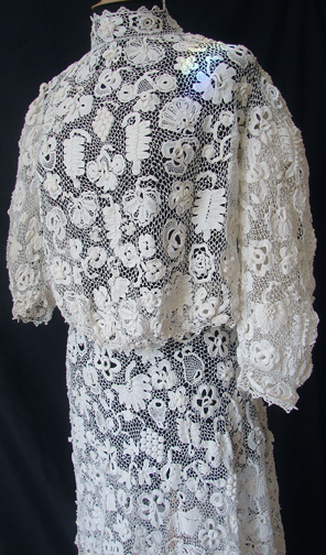 Measuring apprx. 45-46" down the front of the skirt, apprx. 62" down the back of the skirt. Almost 50" around waistline and seems as if it was never used. The blouse measures apprx. 14" around neckline, almost 22" down the front, 25-26" across chest line, 9-9 1/2" across armhole, and 32" around waistline. In good condition, this ensemble seems to be unused.