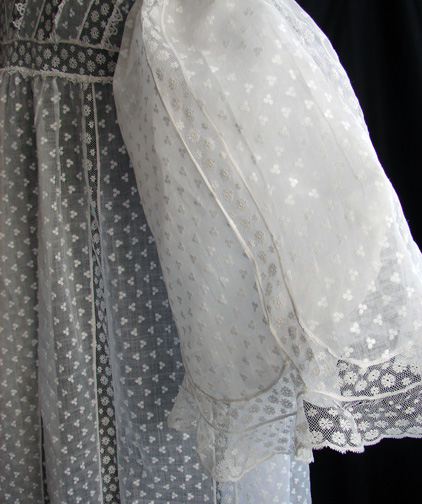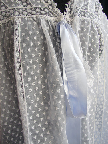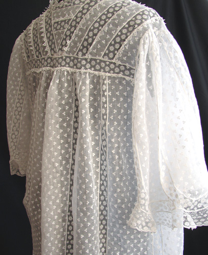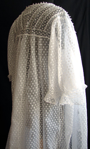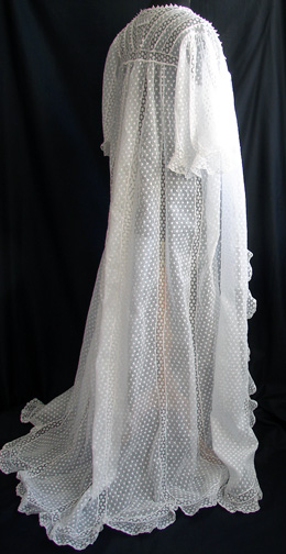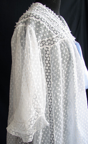 Circa 1890-1900, Ornate Spotted Lawn Peignoir w/ Valencienne Lace