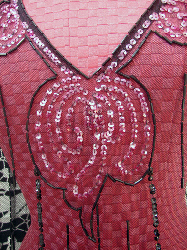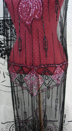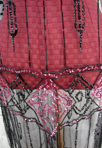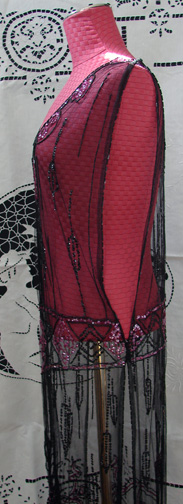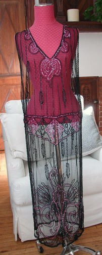 Measuring apprx. 51" long. In very good strong condition, there are a few missing beads but overall this dress seems hardly used.