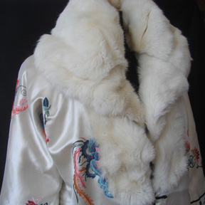 Circa 1920-40's, a magnificent silk embroidered coat that is completely lined with fur. The silk has a luminous and pearlescent glow. The palette is gentle and the opulance of the fur provides the perfect compliment to this superb coat. Exquisite workmanship and design are the hallmarks on this wearable and stylish coat.