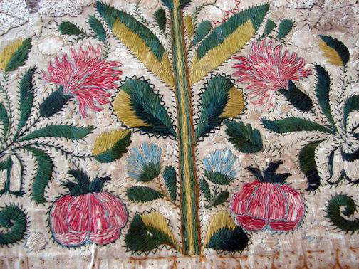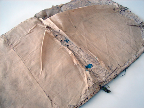 Measuring apprx. 11 1/2" by 12" when opened apprx. 22 1/2" by 12". This item has wear, some of the silk embroidery has worn away and basically wear around edges and some damage on inner silk lining covering the script. Overall on such a rare item, even the damage seems minor. This is a superb item.