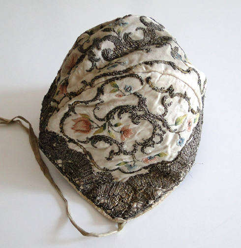 Rare 18th C. Silk Polychrome Embroidered Child's Cap