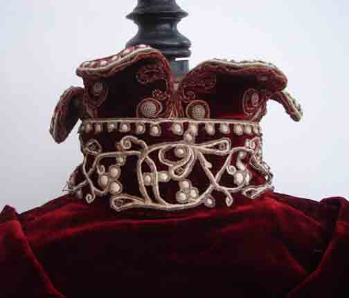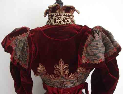 The velvet is in very good condition, and so the majority of the bodice is in good condition. The silk part has damage on it, so this would probably need replacing. The silk lining is in good condition. This is a ensemble that is truly worth repair, the structure is good and strong.
