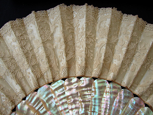 Exquisite 19th C. "Tiffany" Brussels Point De Gaze Lace Fan