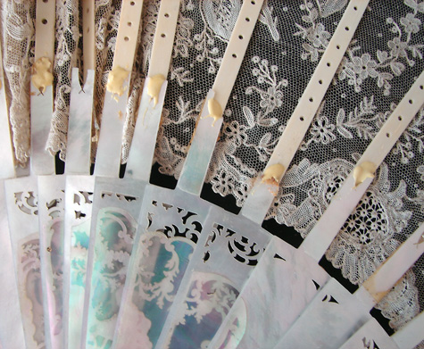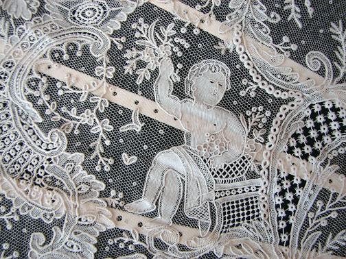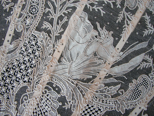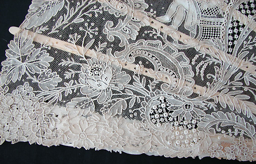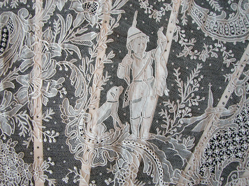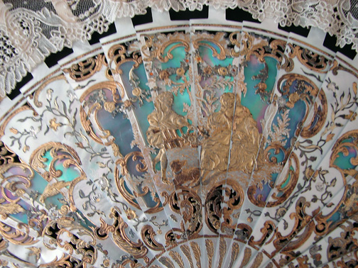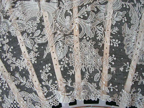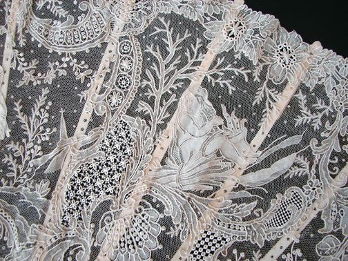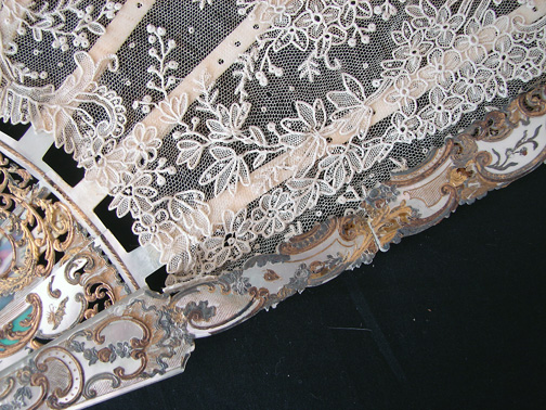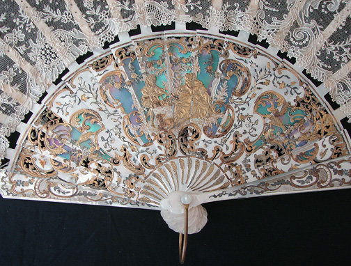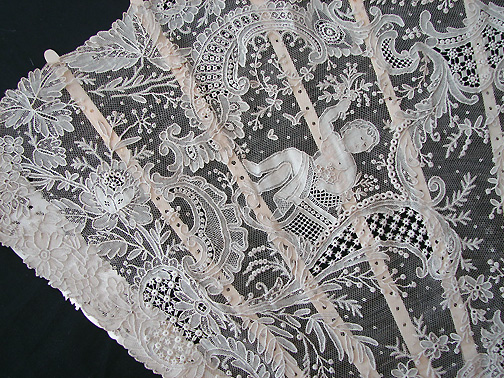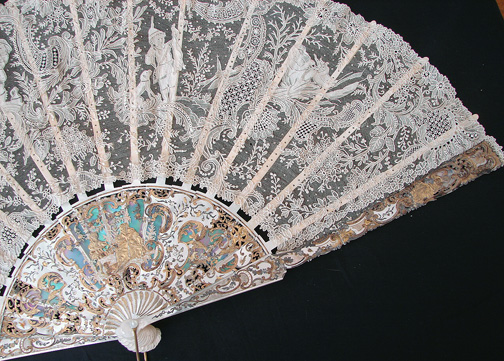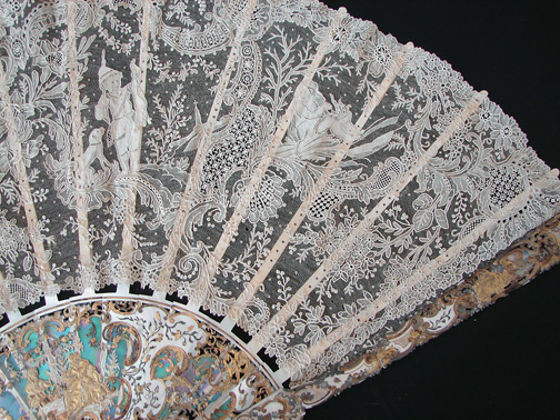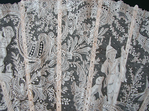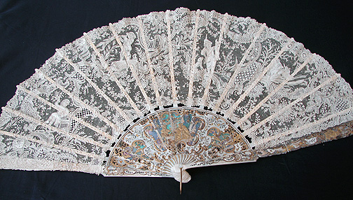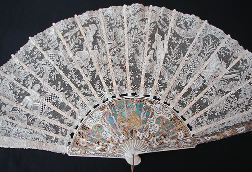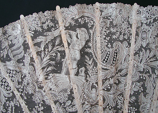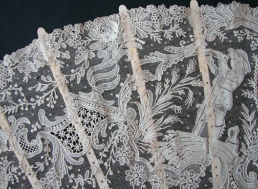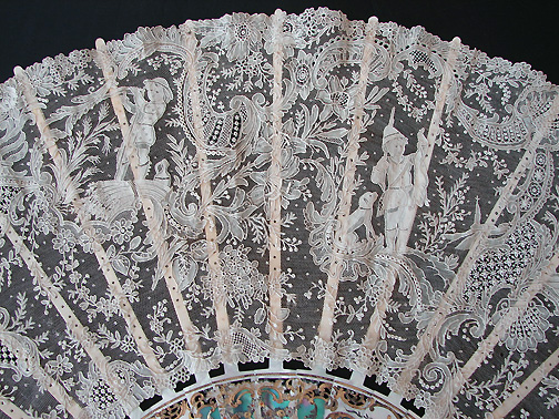 Magnificent Figural Brussels Point De Gaze Lace Fan