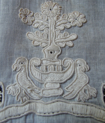 Rare Embroidered Panel w/ Birds & Reticella Lace