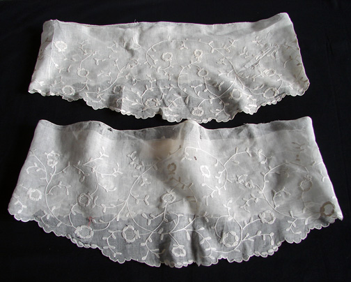 Measuring apprx. 38" round, 9" at widest part. Engageantes are extremely rare to find! There is damage mainly in one, but overall for their rarity and age, this becomes less important. My opinion is that they are in overall good condition. Buyer may return.