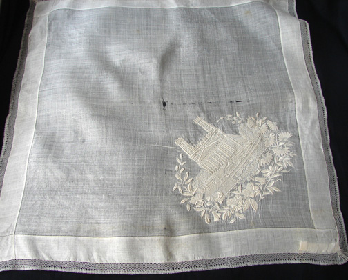Measuring apprx. 18". Although the hankerchief is in strong condition, unfortunately the Museum that had it certainly did it no favours by allowing it to remain brown with age stains. We have washed this with sodium perborate and although it has come up beautiful, nothing could prevent the way it had been stored and so there is openings in the areas where the hankerchief was folded. My opinion is that these hankerchiefs are works of art, and so although there is damage, it does not detract from the overall rarity and astonishing workmanship.The hankerchief is a work of art!