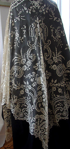 Circa 1860, Fine Brussels Lace Triangular Lace Shawl