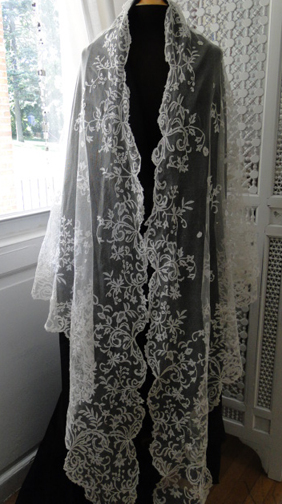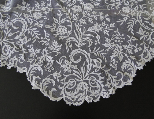 Ornate 19th C. Brussels Applique Triangular Shawl