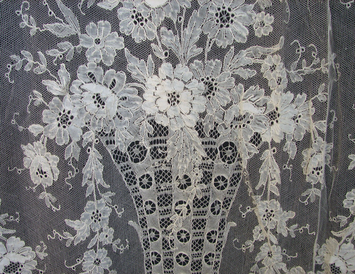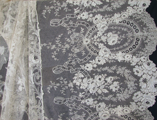 I cannot say enough about this piece. An item for the very knowledgable lace collector or for a museum. Measuring apprx. 104-105" by 95". Condition is quite amazing, perhaps a few minor openings. Absolutely minor on such a rare, well preserved museum quality piece.