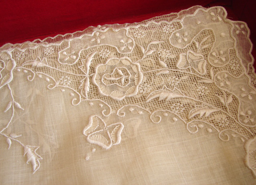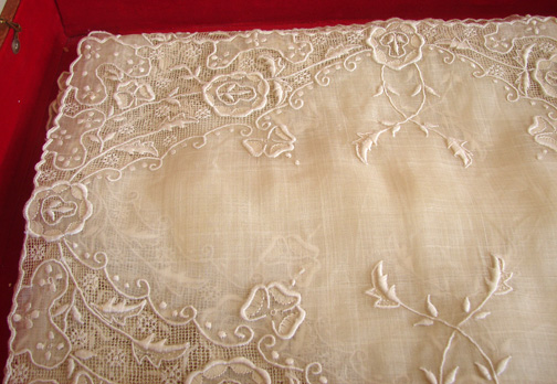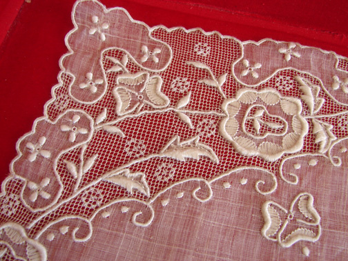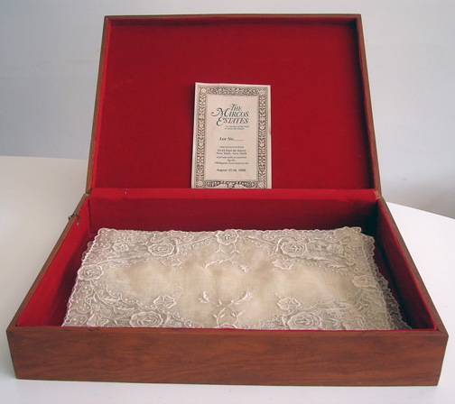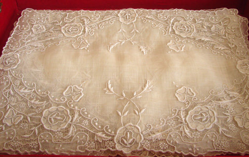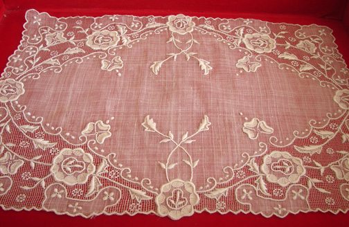 Measuring apprx. 17" by 11 1/2". This offering is for ten placemats. As in other placemat set the box is not included, as we have two other sets, but the box will be included for purchasing two sets or more. In good, strong condition but needs laundering.