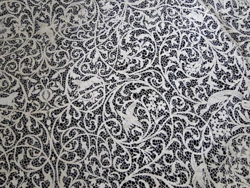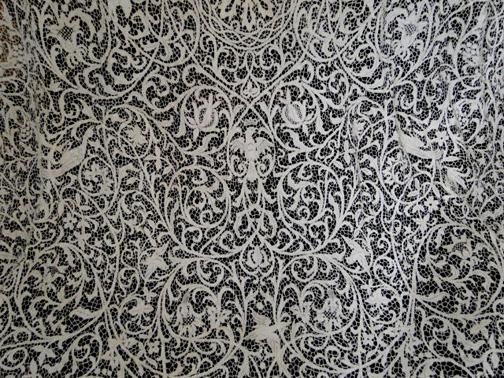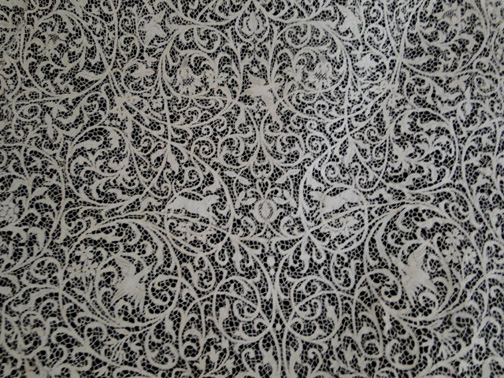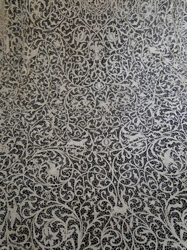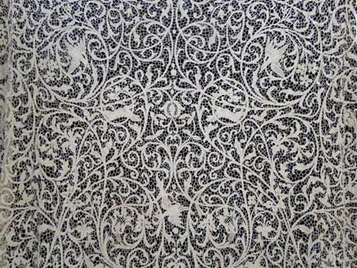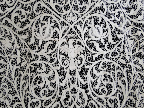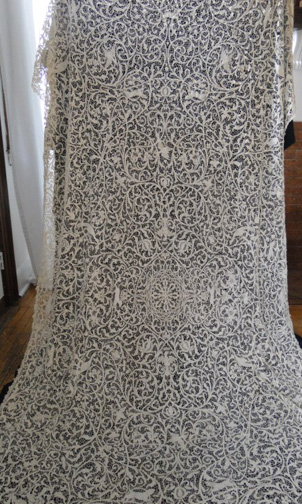 The scale is quite magnificent, this cloth is a testament to the skill of the lacemakers, and also the designer. Measuring apprx. 167" by 70" wide. In mainly very good condition, a few minor openings and spots.