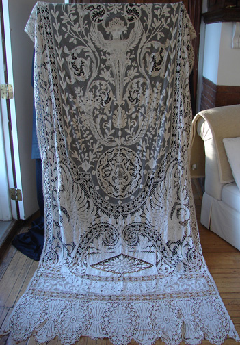 Magnificent Figural Needlepoint & Bobbin Lace Curtains