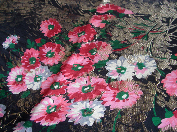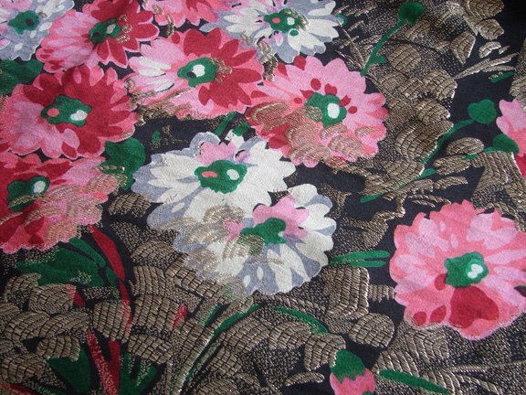 Circa 1920, Lovely Lame Shawl w/ Flowers
