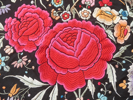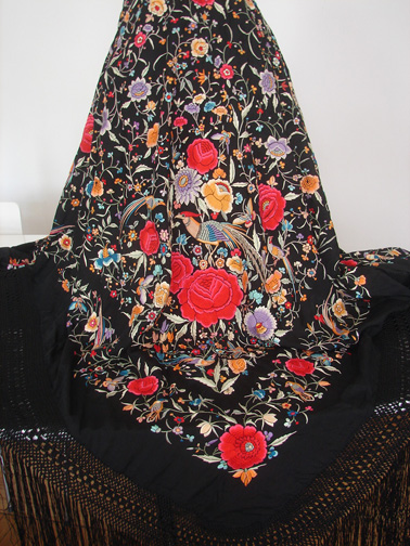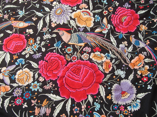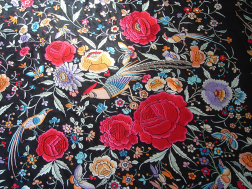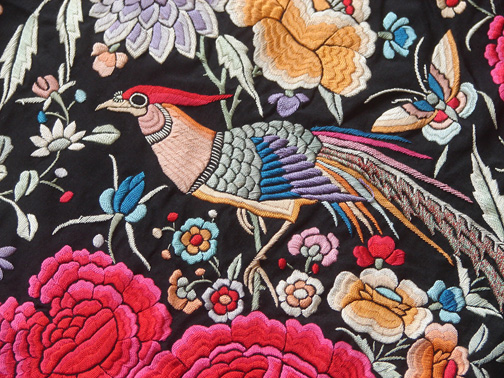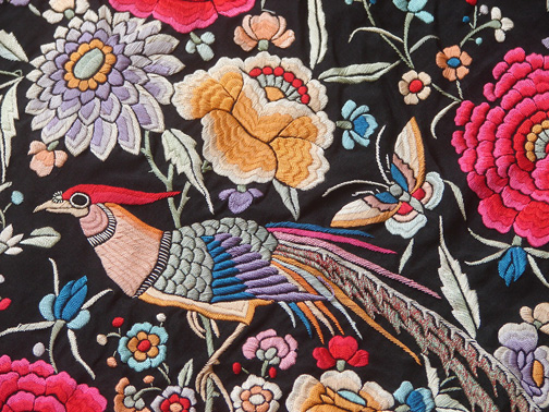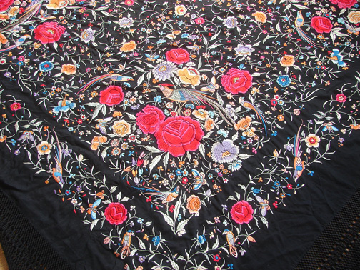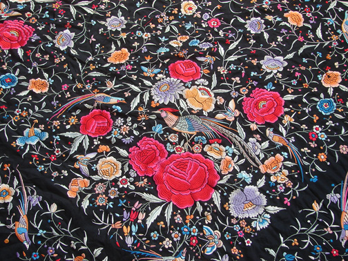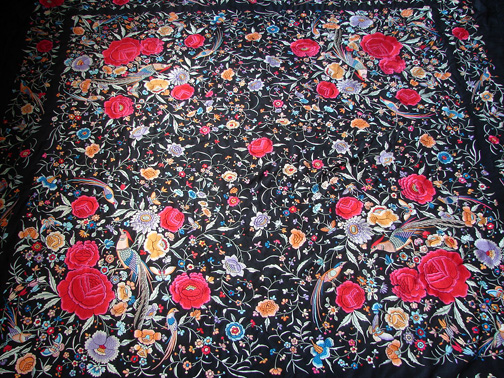 Ornate Canton Embroidered Shawl w/ Birds & Butterflies
