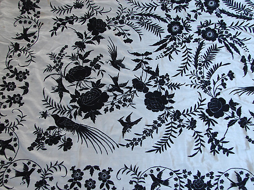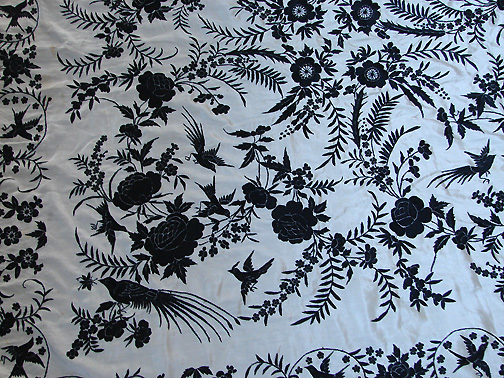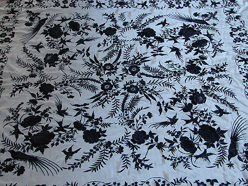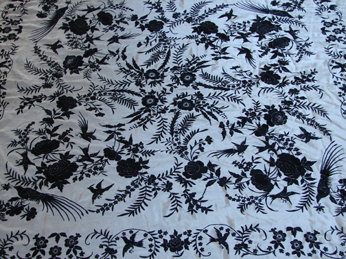 Circa 1900's, Fine Canton Silk Embroidered Shawl w/ Birds