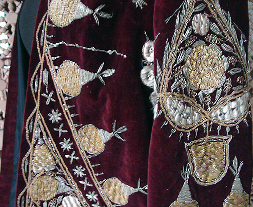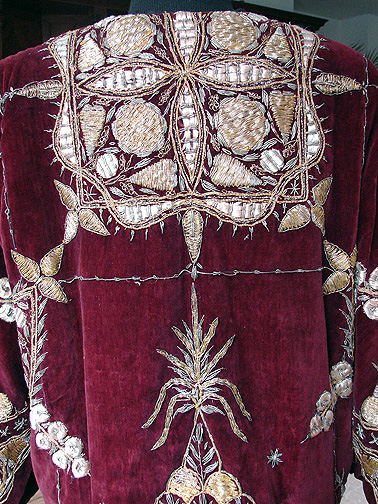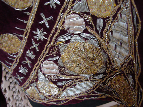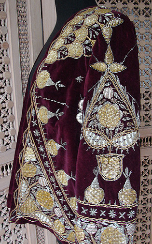 Measuring apprx. 26" long, 9 1/2" for each front side, 10" across arm, and 25" for tapered sleeve. In overall good condition, there are some loose threads. Lining has been replaced.
