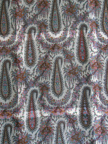 Circa 1840's, Superior Printed Silk Challis Shawl w/ Boteh